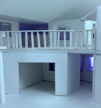 I created concept work and a director’s model of the police station known as “The Barn”, mine set in a converted Catholic mission church in Los Angeles.